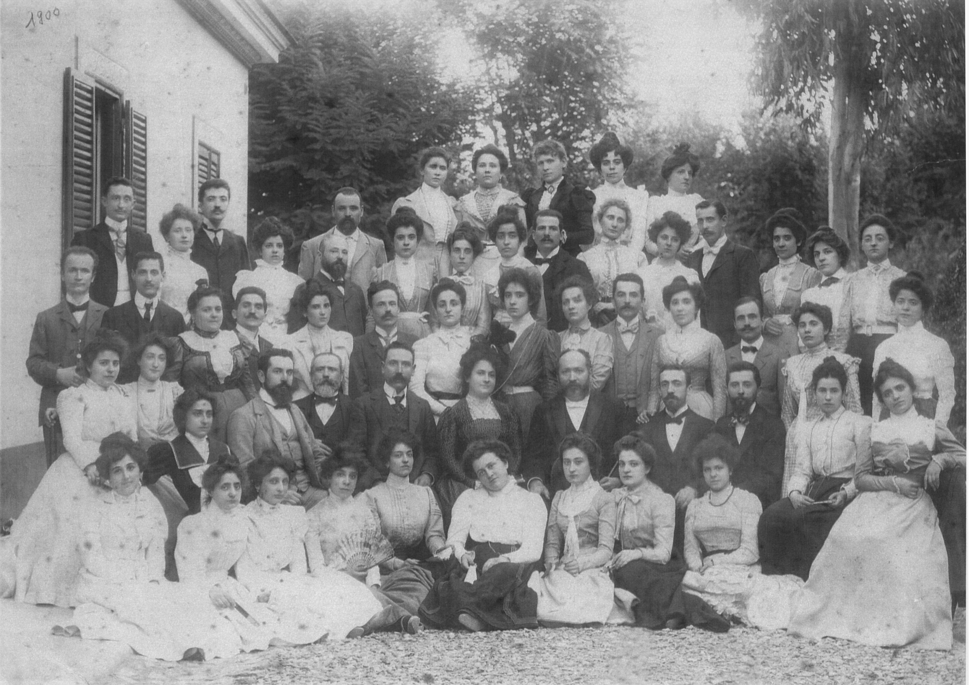 Scuola Magistrale Ortofrenica, Roma, 1900. Gruppo di docenti e studenti: Montessori al centro nella seconda fila dal basso, Archivio ONM.