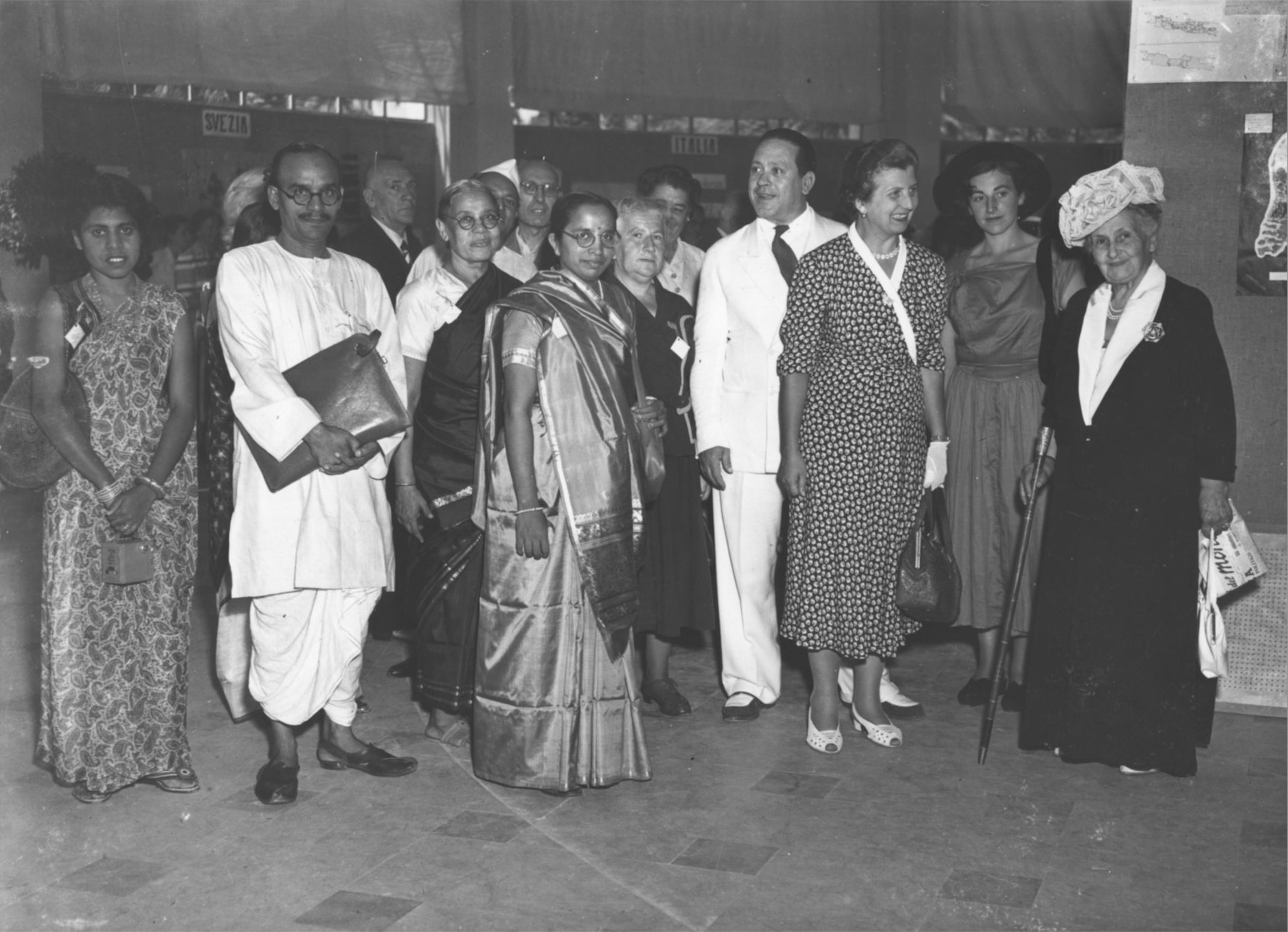 [Maria Montessori, to her left her granddaughter Marilena M. Montessori, followed by Hon. Maria de Unterrichter Jervolino, President of the Opera Nazionale Montessori, and Mario M. Montessori, International Montessori Congress on the theme The Education of Man for World Reconstruction, San Remo, 22–29 August 1949] – ONM Archive.